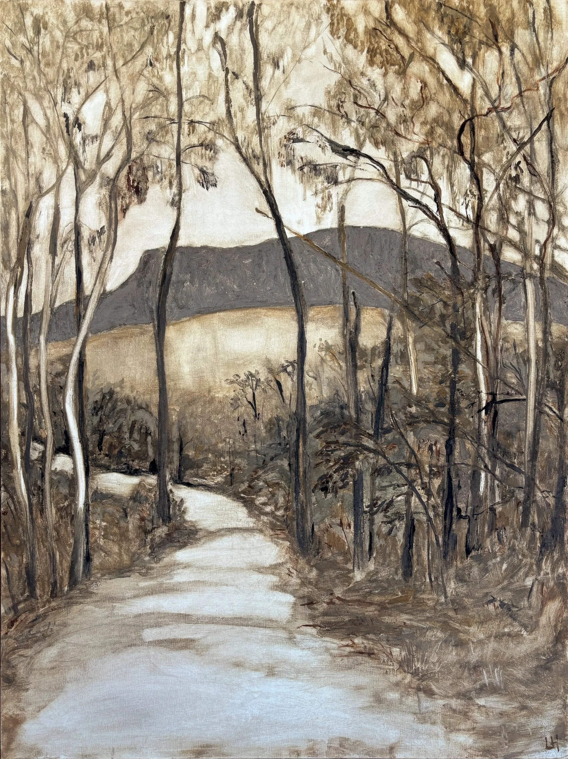 There could be lyrebirds here. 120x100cm. Leighton Contemporary