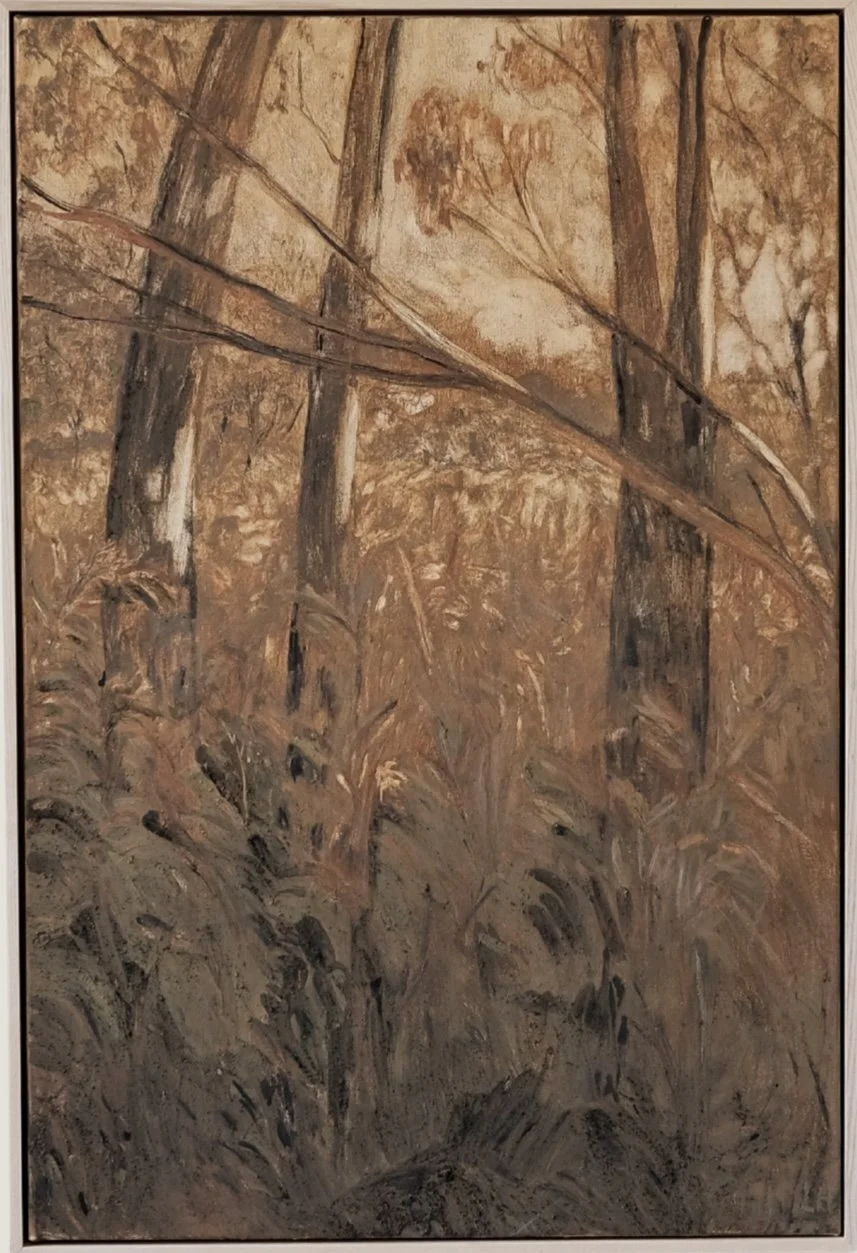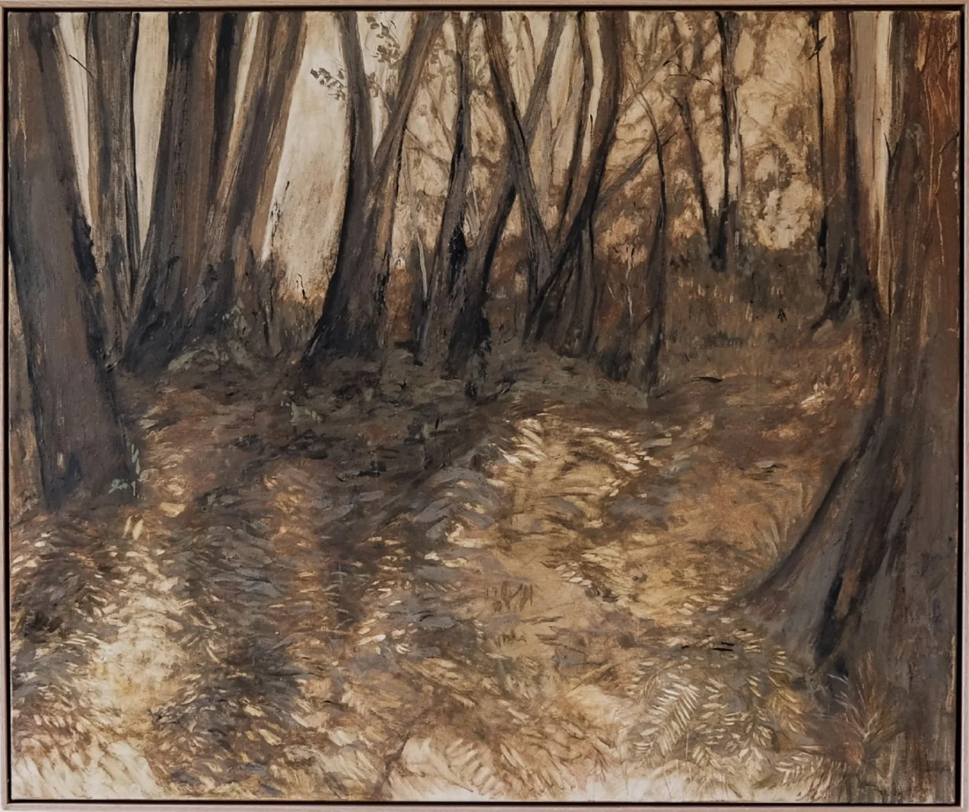 ‘There might be lyrebirds here’ 90x120cm earth pigments, copper verdigris and charcoal - $3200 available at Leighton Contemporary (click to view)