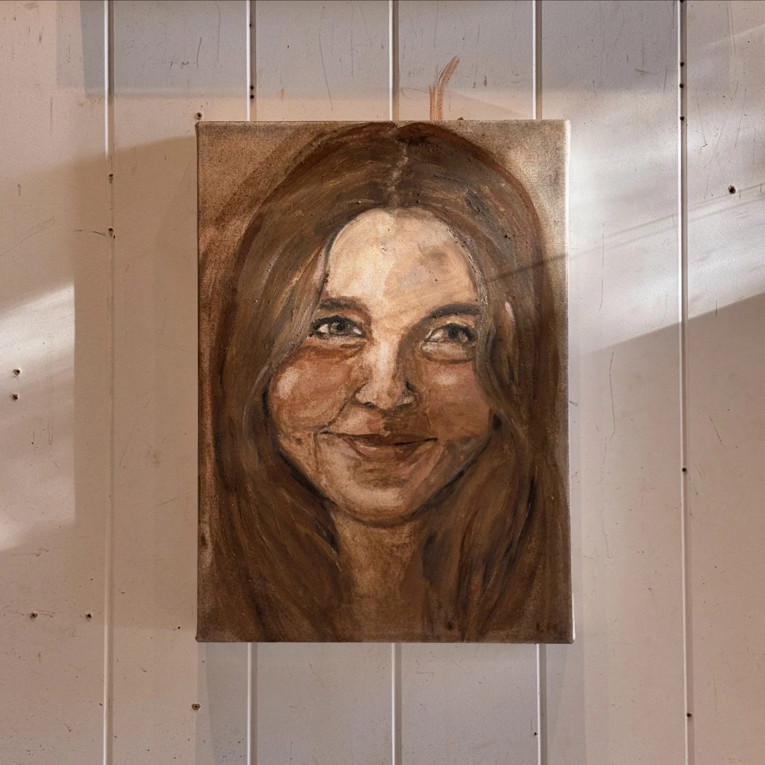In memory of Audrey Griffin. Ground pigments and binder on canvas. 40x30cm. 2025